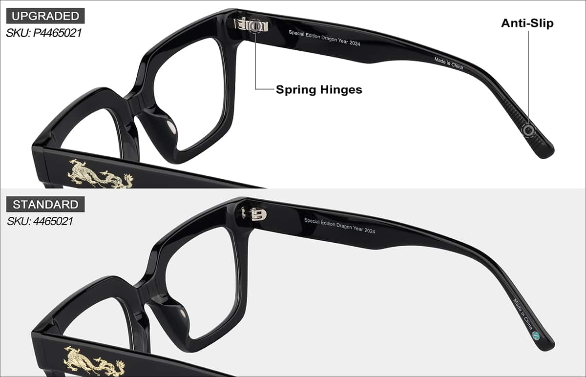 - Design: Hand-crafted from premium acetate, this bold frame combines dragon insignia temples and metal endpiece rivets for a modern, sculptural feel.